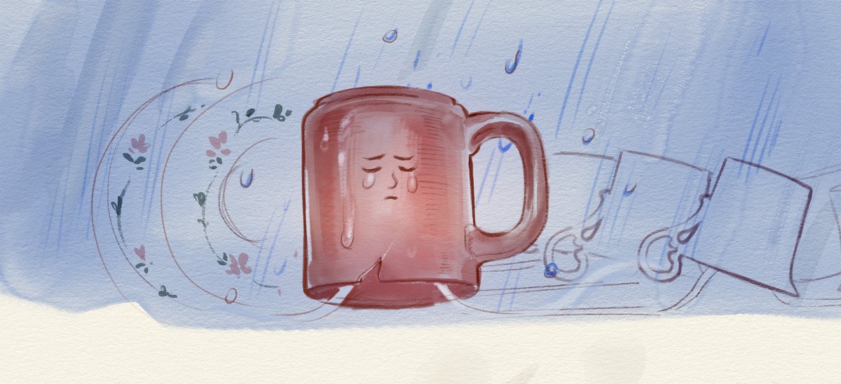 „To mój koniec!” – przeraził się wyszczerbiony kubek, po czym usłyszał głos zamykanej zmywarki i poczuł falę ciepłej wody o zapachu mydła.