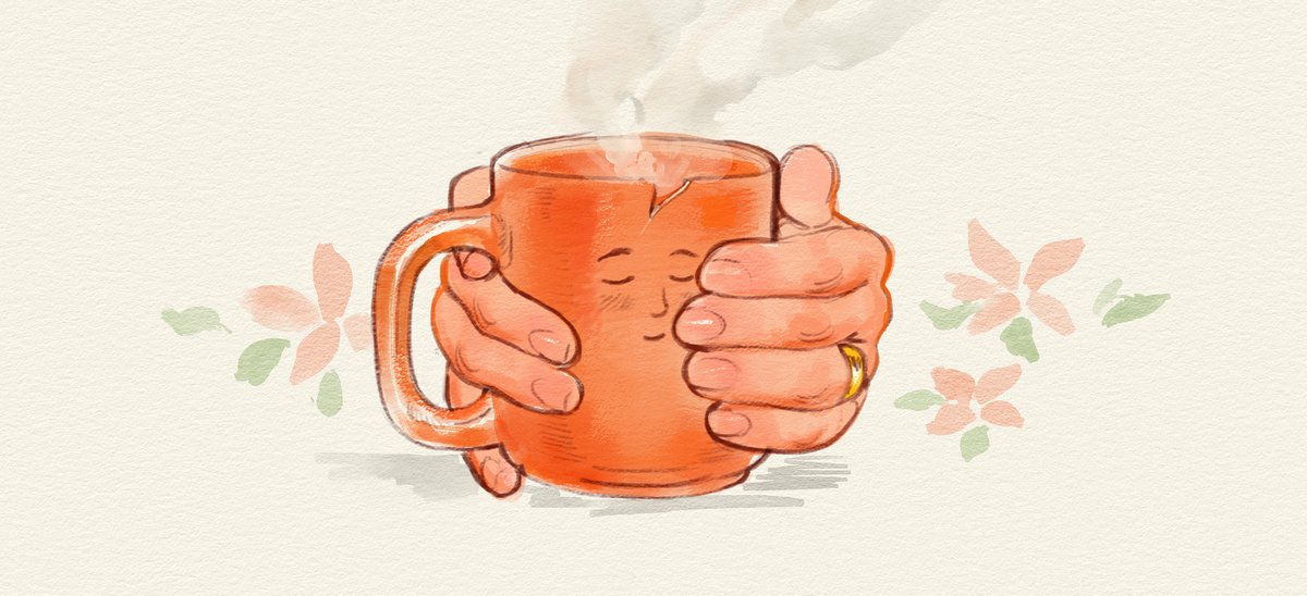 Powiedziała, że lubi stary kubek, bo najlepiej leży w dłoniach i miło je ogrzewa.