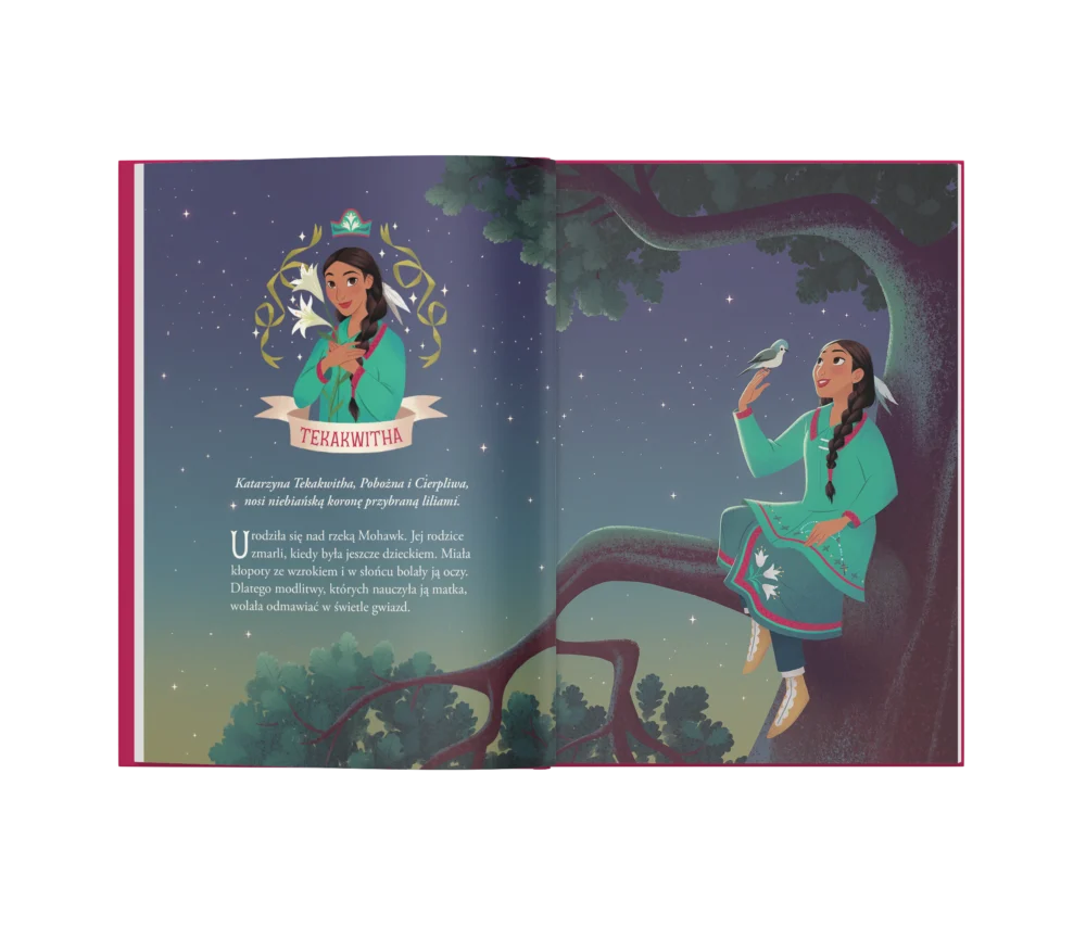 Dawno temu żyły dziewczynki, które nosiły w sercu coś więcej niż marzenia. Były waleczne, choć czasem się bały. Delikatne, lecz niezwykle silne. Joanna usłyszała głos z nieba. Katarzyna podążyła za światłem wśród ciemnego lasu. Łucja dzieliła się skarbem mądrzejszym niż cesarskie złoto. Teresa nauczyła się czynić małe rzeczy z wielką miłością.
